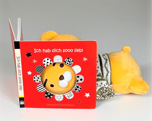 Ich hab dich sooo lieb! ist ein kleinkindgerechtes, dickes Pappbuch mit Loch zum Durchgucken. Und mit Spiegel zum Selbererkennen - wenn es soweit ist.
