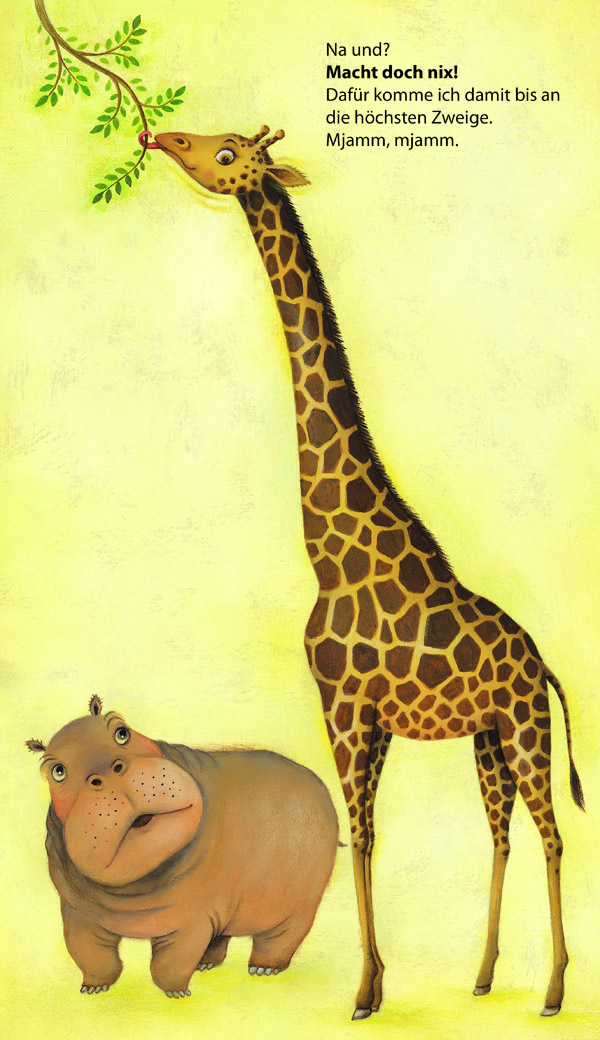 die Giraffe hat einen viel zu langen Hals,